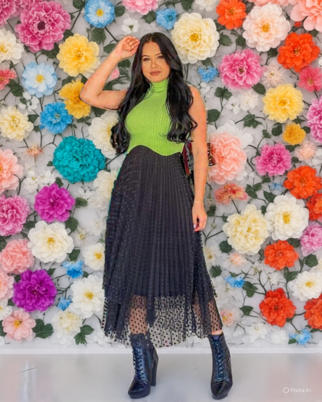 Saia Midi Plissada, Confeccionada em Tule de Malha, com 2 Camadas de Tule, Forro e Elástico na Cintura.