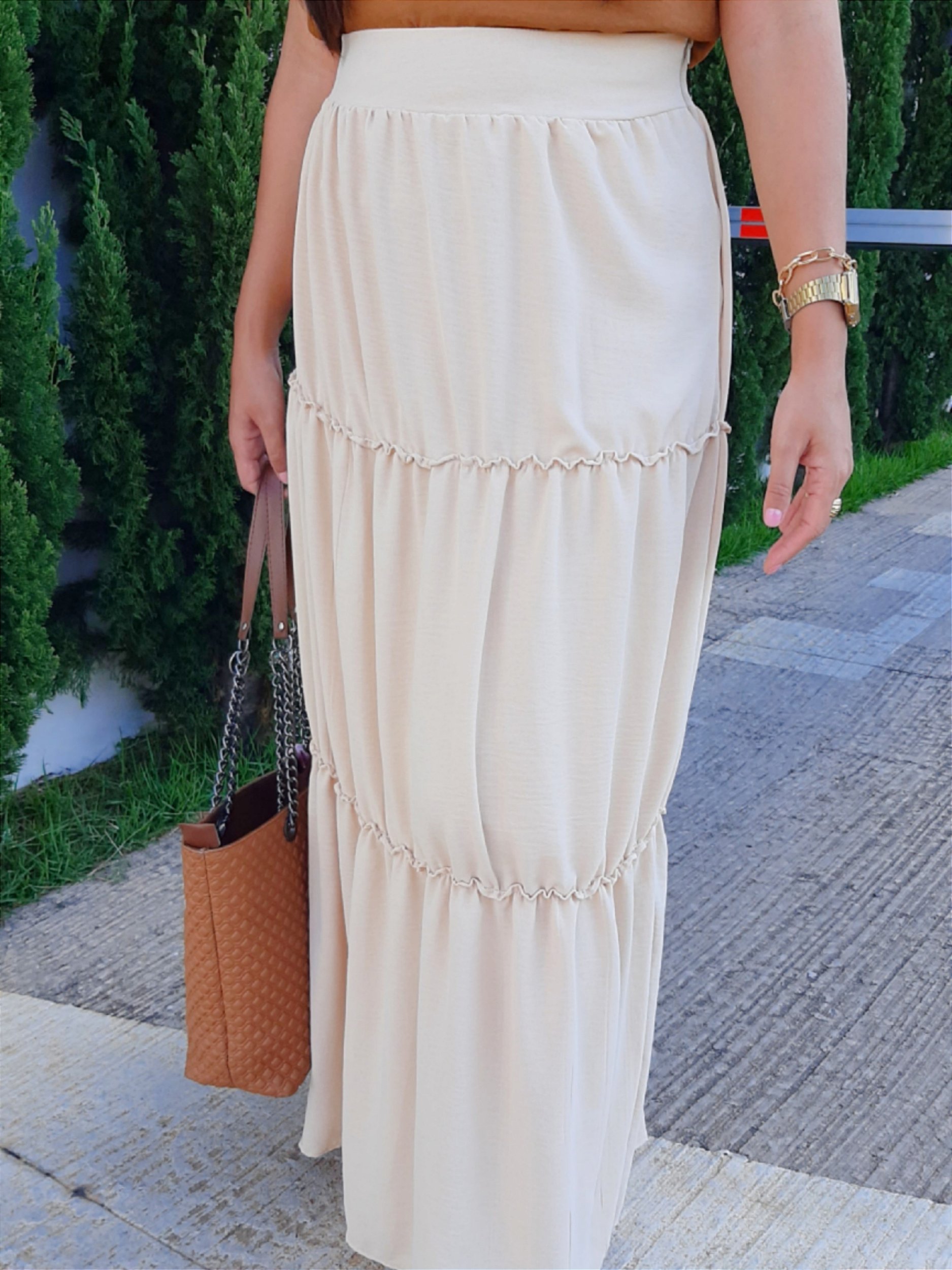 Saia Longa, Modelo Três Marias com Babadinhos, Confeccionada em Crepe Duna, com Forro e Zíper na Lateral da Cintura!
