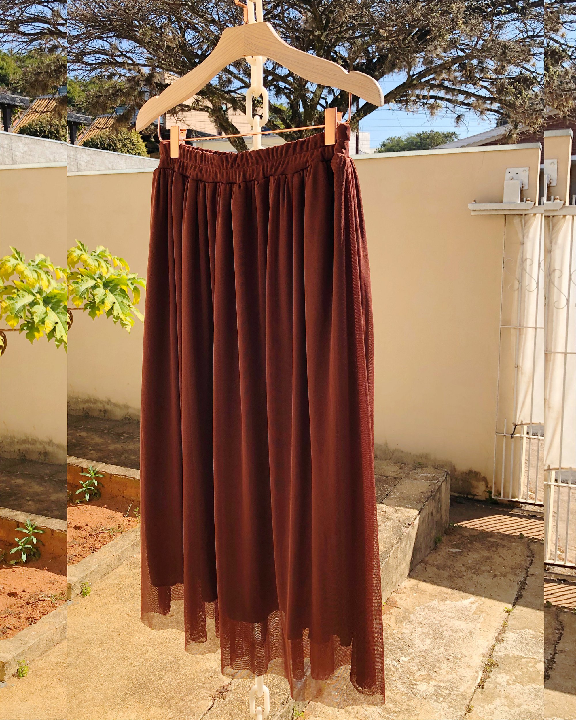 Saia Midi, Modelo Gôde, Confeccionada em Tule de Malha, com Forro e Elastico na Cintura.